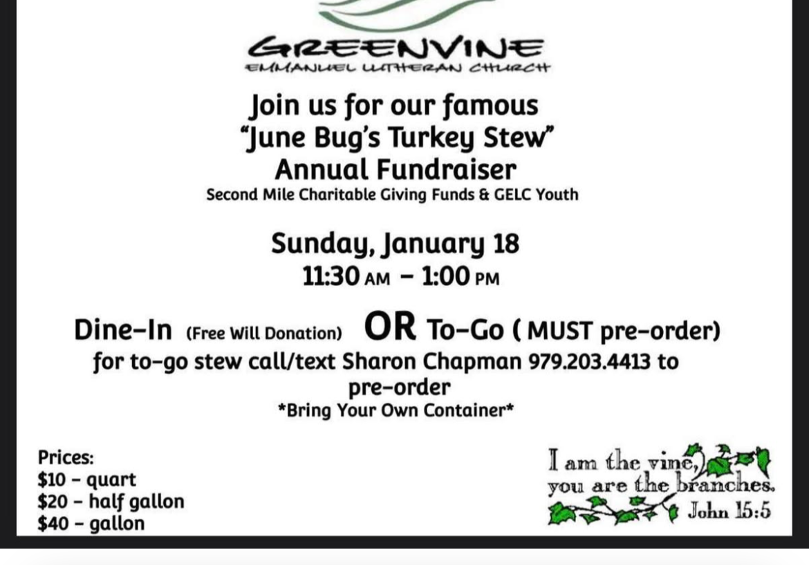 Thank you to all who participated in our stew and raffle fundraiser that benefitted out youth and Second Mile giving!
